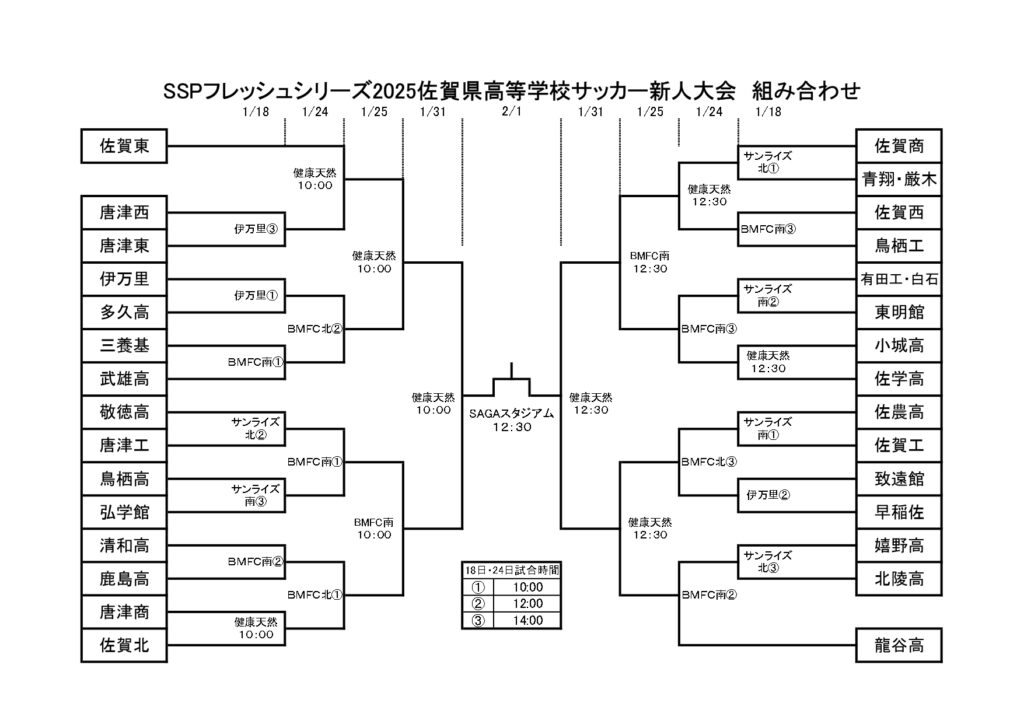SSPフレッシュシリーズ2025佐賀県高等学校サッカー新人大会 組み合わせ